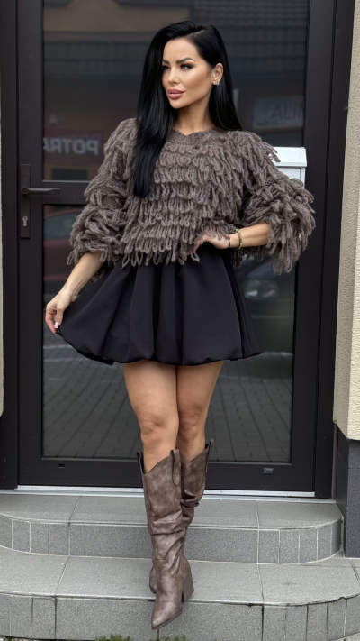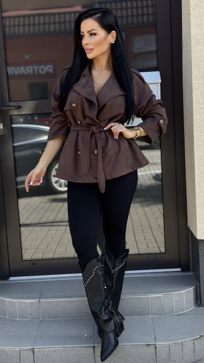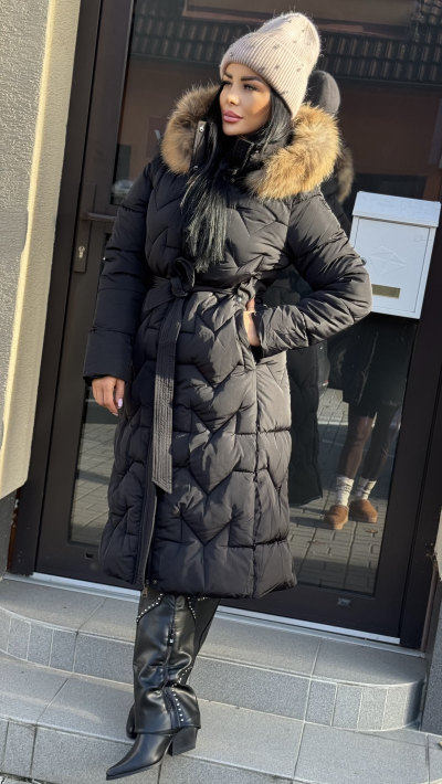 Dámsky kožušinový kabát – čokoládovohnedá farba