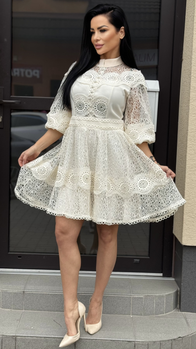 Smotanové čipkované šaty