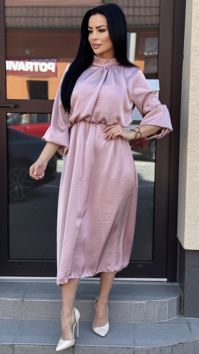 Elegantne dámske šaty so skladanou sukňou – KAKI farba