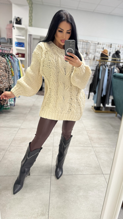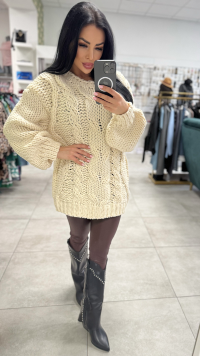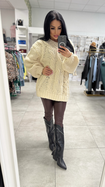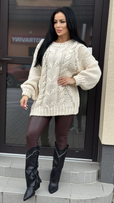 Luxusný, dámsky sveter v béžovom prevedení. Sveter je v krásnom odtieni bledobežovej. Pôsobí veľmi štýlovo, vkusne a je teplý.
