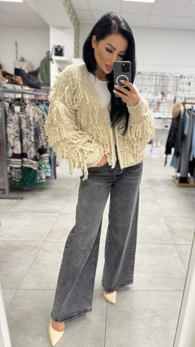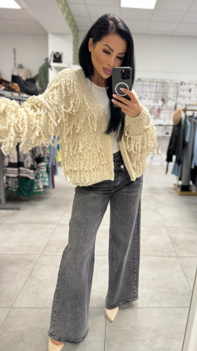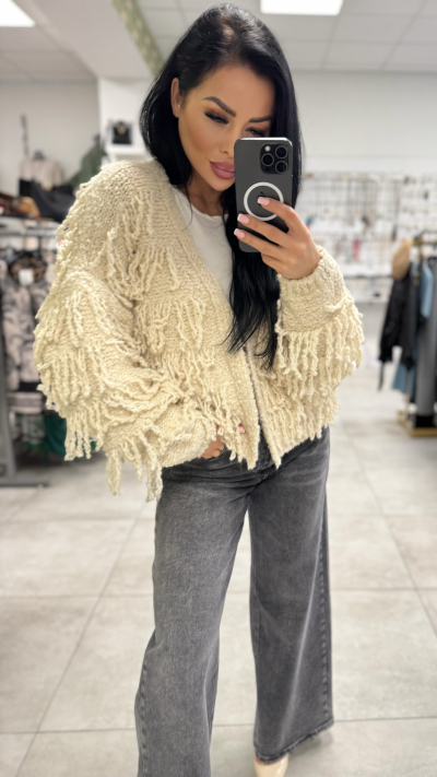 Štýlový cardigan so strapcami – Béžová farba