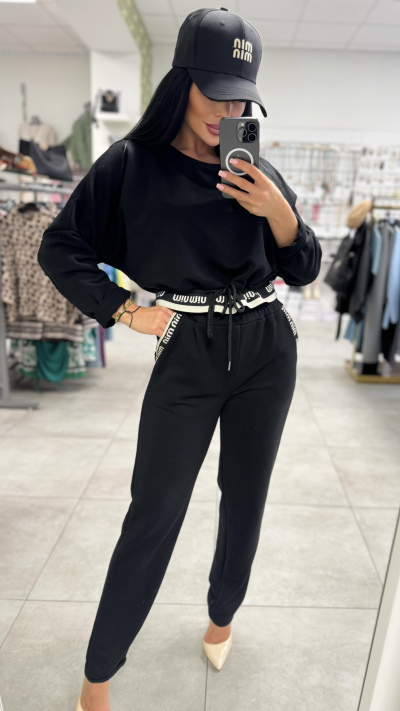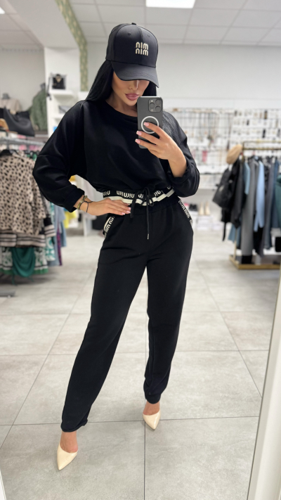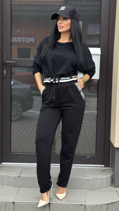 Štýlová, dámska súprava dvojdielnom prevedení. Súprava sa skladá z nohavíc a mikiny. Štýlový kúsok, ktorý sa hodí na bežné nosenie.