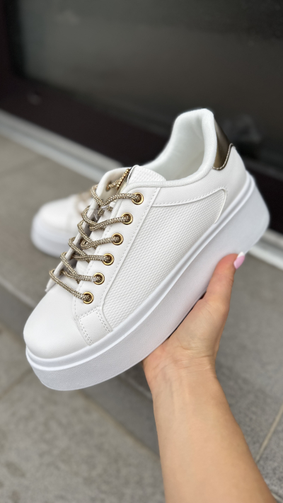 Dámske biele platformové tenisky so zlatým detailom