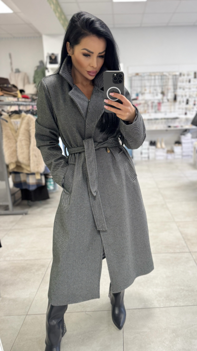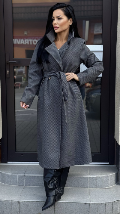 Dámsky dlhý kabát – siva farba