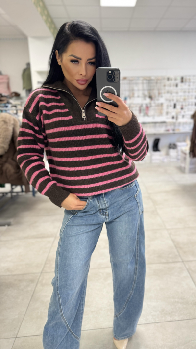 Pruhovaný sveter so zipsom – cyklámenovo-čokoládový Rozžiar svoj outfit týmto krásnym cyklámenovo-čokoládovým svetríkom, ktorý spája ženskosť a štýl v dokonalej harmónii. Jemný úplet s výraznými čokoládovohnedými pruhmi pôsobí sviežo a elegantne zároveň. ???? Materiál: mäkký, hrejivý úplet – príjemný na nosenie, neškriabe ???? Farba: cyklámenová s čokoládovohnedými pruhmi ???? Strih: mierne voľný, so zapínaním na zips pri krku ✨ Detail: golierik so zipsom umožňuje rôzne nosenie – otvorený pre ležérny vzhľad alebo zapnutý pre väčší komfort ???? Štýl: ideálny k džínsom, sukni alebo koženým nohaviciam – perfektný na jesenné aj zimné dni Tento sveter ti dodá šmrnc a pohodlie v jednom – výrazný kúsok, ktorý oživí každý outfit.