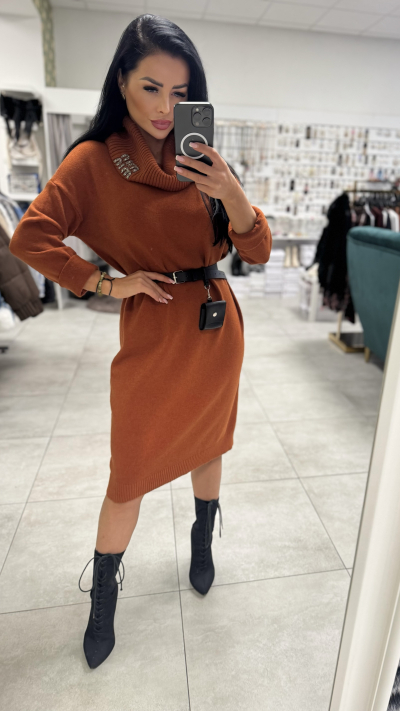 Štýlové, úpletové šaty v univerzálnej veľkosti. Šaty sú v jednofarebnom prevedení. Šaty sú s dlhým rukávov. Súčasťou šiat je aj opasok.