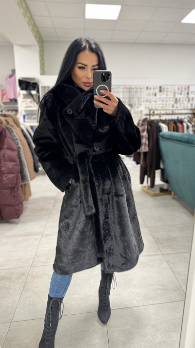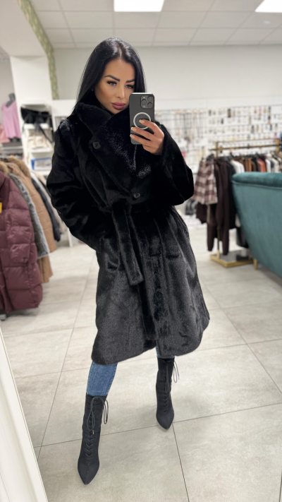 Dámsky elegantný čierny kožuch – luxusný dlhý model Dokonalý kúsok na zimné mesiace! Tento čierny, extra jemný a hebký kožuch pôsobí mimoriadne luxusne a elegantne. Je ideálny na každodenné nosenie aj na špeciálne príležitosti. Príjemný teplý materiál, krásny spád a štýlové zapínanie z neho robia must-have tejto sezóny. Vlastnosti: • extra mäkký a hladký kožuchový materiál • dvojradové zapínanie na efektné gombíky • opasok na zvýraznenie pásu • pohodlný dlhší strih • bočné vrecká • príjemná hrejivá podšívka Strih a veľkosť: Univerzálny, odporúčané pre veľkosti S – L (kožuch sa pekne prispôsobí a dá sa stiahnuť opaskom). Farba: Čierna – elegantná, nadčasová, ľahko kombinovateľná.