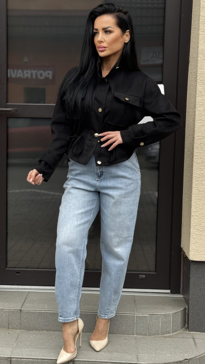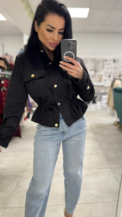 Štýlová, dámska bunda v krátkom prevedením. Bunda je vyrobená z vysoko kvalitného a príjemného materiálu. Veľkosť bundy je Univerzálna. Zapínanie má vpredu na gombíky. Perfektný kúsok na jar.