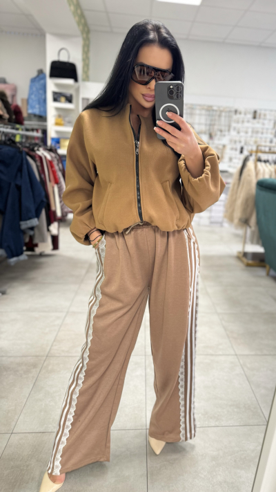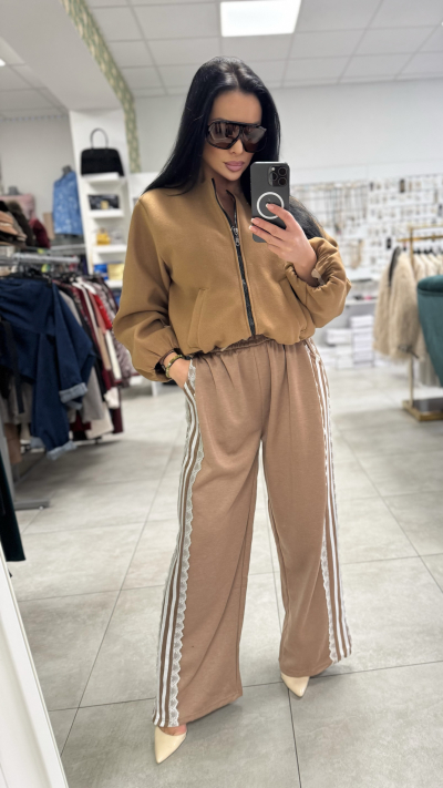 Štýlové, Dámské Tepláky v univerzálnej veľkosti. Tepláky sú voľného strihu. V Páse je guma čím si ich pekne prispôsobíte na postavu. Tepláky sú ozvláštnené po boku čipkou, čím vytvárajú netradičný a extravagantný Look.