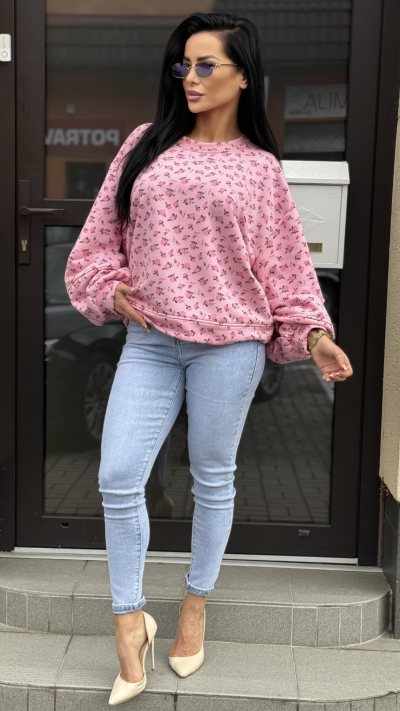 Ružová mikina s kvetinovým vzorom