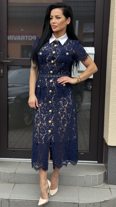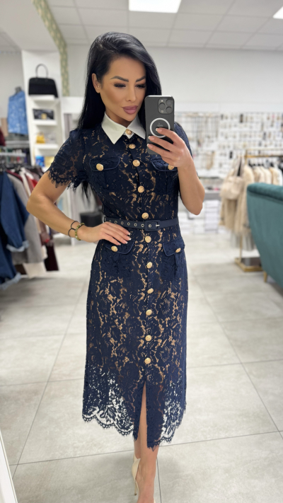 TmavoModre čipkované šaty
