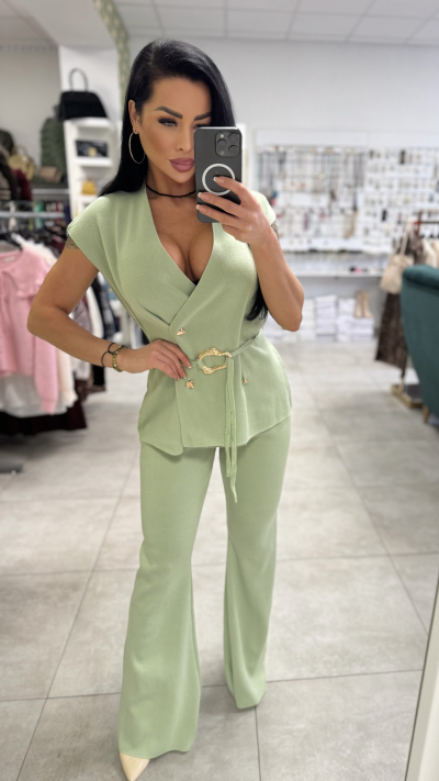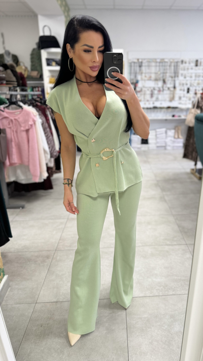 Elegantný komplet v pistáciovej farbe