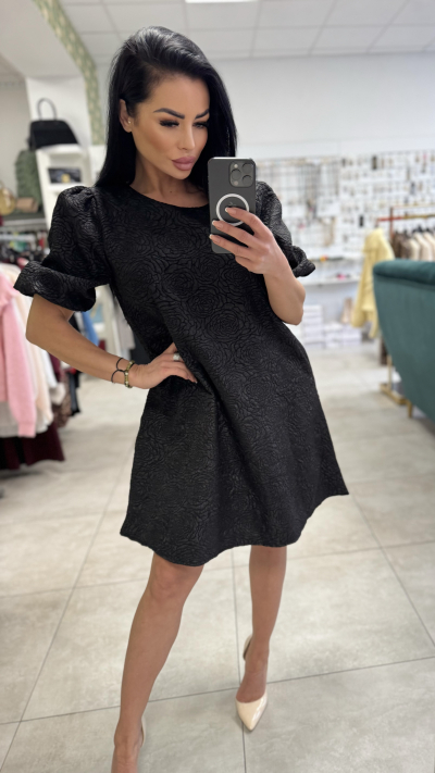 Čierne elegantne šaty v krásnom prevedení. Šaty sú v univerzálnej veľkosti. Perfektný strih, ktorý sa hodí takmer na všetky druhý postavu. Šaty sú vyrobené z vysoko kvalitného, príjemného materiálu. Takýto kúsok je vhodný na rôzne príležitosti.