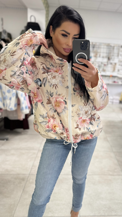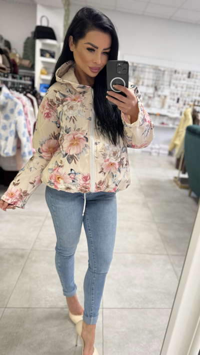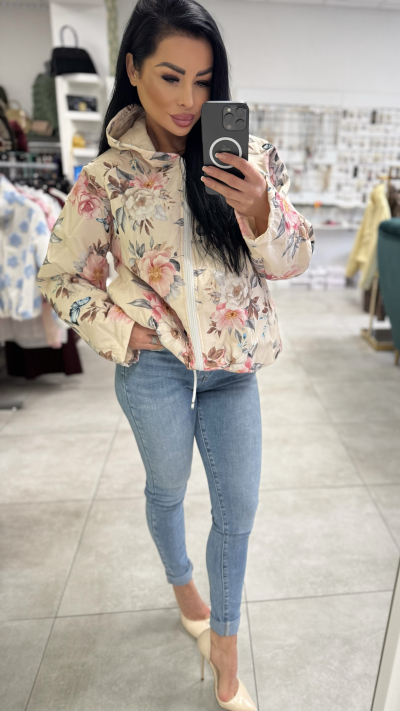 Dámska kvetinová prechodná bunda s kapucňou Štýlová dámska bunda s jemným kvetinovým vzorom, ktorá je ideálna na jarné a jesenné dni. Bunda zaujme romantickým dizajnom v svetlých farbách doplneným o výrazné kvety, vďaka čomu krásne oživí každý outfit. Má praktickú kapucňu, zapínanie na zips a pohodlný, mierne voľnejší strih, ktorý zabezpečuje komfort pri nosení. Ľahký materiál je príjemný na dotyk a vhodný na každodenné nosenie – či už do mesta, na prechádzku alebo na voľný čas. Bunda sa perfektne kombinuje s džínsami aj športovo-elegantnými outfitmi. Detaily produktu: • dámska prechodná bunda • romantický kvetinový vzor • zapínanie na zips • praktická kapucňa • pohodlný a moderný strih • ideálna na jar a jeseň • skvelo kombinovateľná s džínsami aj športovým outfitom