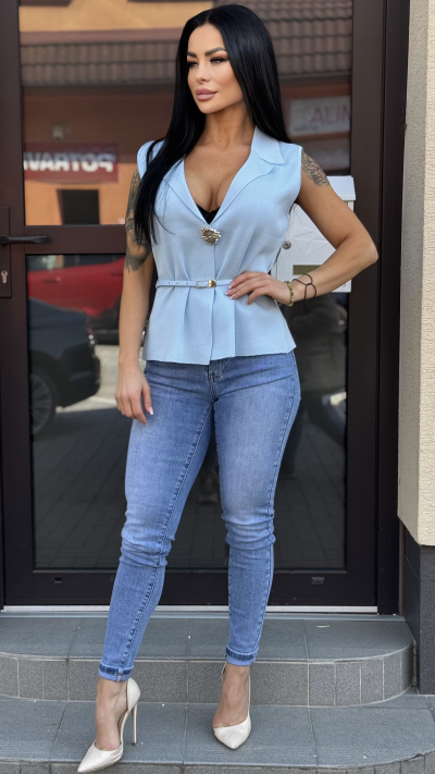 Elegantná dámska vesta- bledomodrá