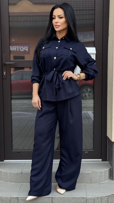 Štýlový, elegantný, dámsky komplet v dvojdielnom prevedení. Komplet je v krásnej námornícky modrej. Je vyrobený z vysoko kvalitného materiálu. Veľkosť je Univerzálna sedí od S do menšie L.