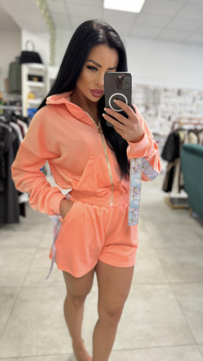 Štýlová dámska dvojdielna súprava v sviežej broskyňovej farbe, ktorá je ideálnou voľbou na teplé dni ☀️
