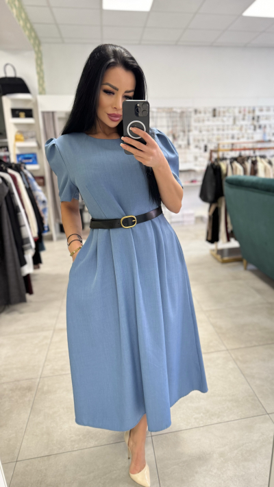 Elegantné dámske šaty v jemnej modrej farbe, ktoré sú stelesnením ženskosti a nadčasového štýlu ????