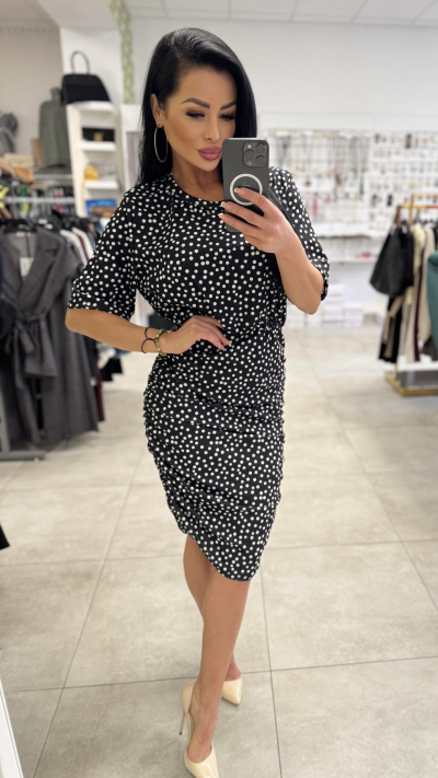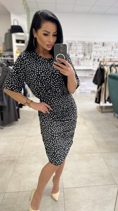 Čierne šaty s bielymi guľôčkami