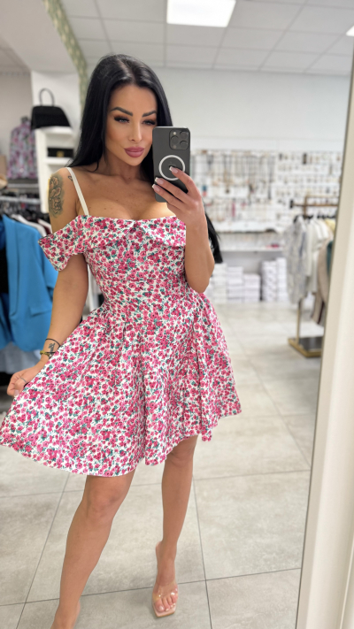 Luxusné, dámske šaty v krásnom prevedení. Šaty sú v univerzálnej veľkosti. Perfektný v kúsok vhodný do teplého letného počasia. Kvetinový vzor pôsobí veľmi jemne, nežné a zároveň ženský