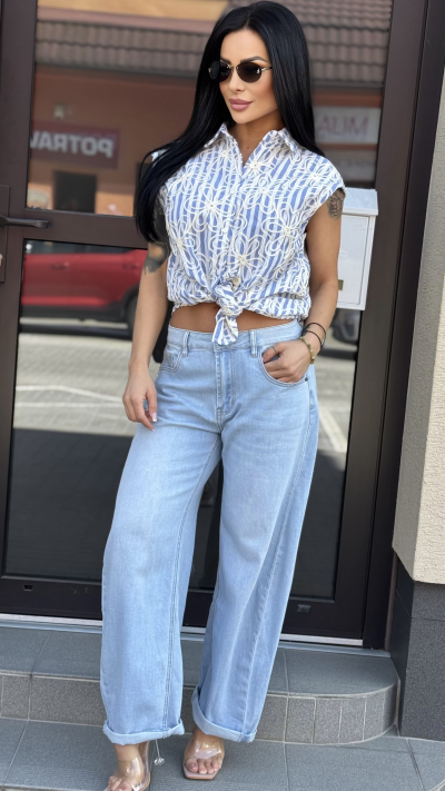 Štýlová dámska košeľa v krásnom bledomodrom prevedení. Košeľa je v univerzálnej veľkosti. Pekný kúsok vhodný na bežné nosenie.