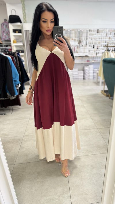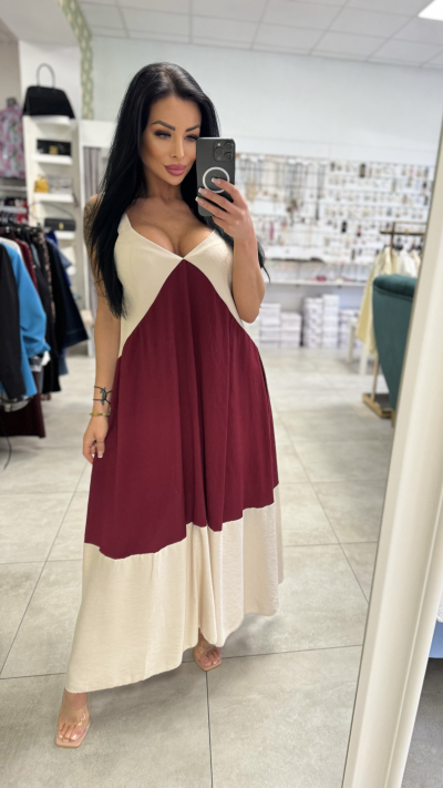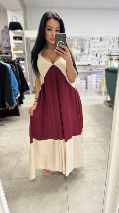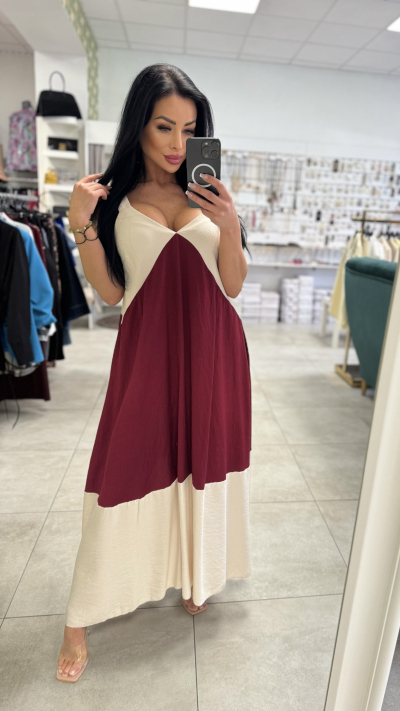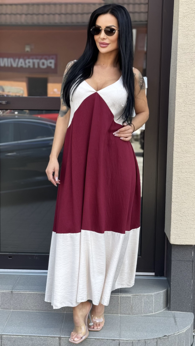 Dlhé bordovo-béžové šaty