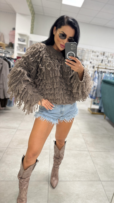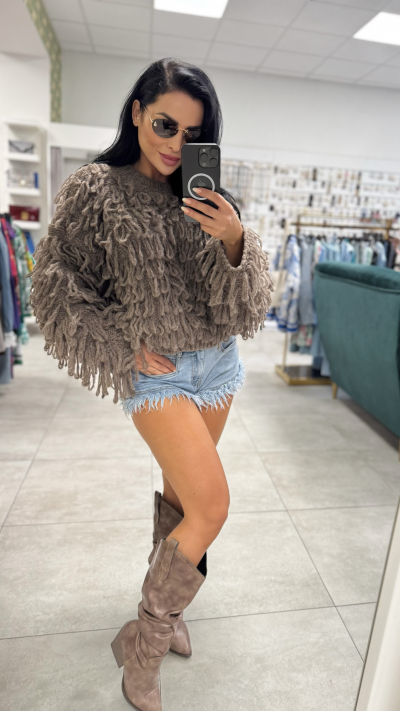 Dámsky štýlový sveter s strapcami – univerzálna veľkosť Buď neprehliadnuteľná s týmto trendy svetrom so strapcami! Sveter má originálny nadýchaný vzhľad, ktorý dodá každému outfitu šmrnc. Je mäkký, príjemný na nosenie a vďaka voľnému strihu sa prispôsobí každej postave (univerzálna veľkosť). ✨ Detaily produktu: • materiál: mäkká pletenina • dizajn so strapcami po celej ploche • voľný, oversize strih • dlhý rukáv • univerzálna veľkosť (vhodný pre S–L) Perfektne sa hodí k rifliam, koženkovým nohaviciam alebo sukni a v kombinácii s čižmami vytvorí dokonalý outfit.