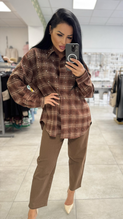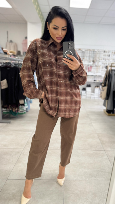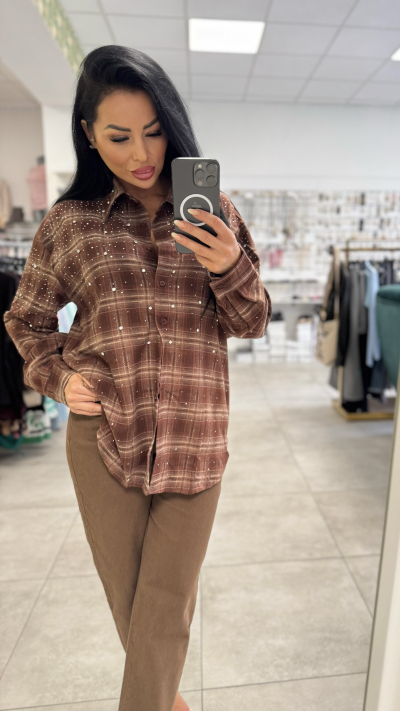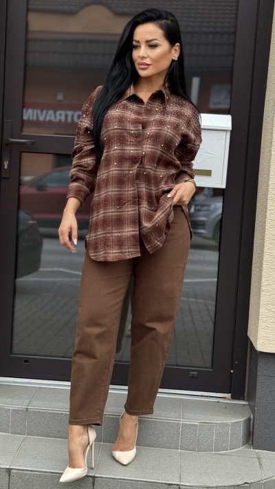 Univerzálna károvaná košeľa s kamienkami – hnedá farba