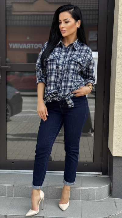 Klasická modrá károvaná košeľa, ktorá by nemala chýbať v žiadnom šatníku. Vďaka svojmu nadčasovému dizajnu a pohodlnému strihu je ideálna na každodenné nosenie. Ľahko ju skombinuješ s džínsami, nohavicami aj legínami a vždy budeš vyzerať štýlovo. • Strih: klasický, zapínanie vpredu na gombíky • Dizajn: modré káro, bez kamienkov – čistý, univerzálny vzhľad • Materiál: vysokokvalitný a príjemný na nosenie • Veľkosti: S/M a L/XL Táto košeľa sa dá nosiť voľne, zastrčená do nohavíc alebo uviazaná v páse – vždy dodá outfitu ležérny, ale zároveň trendový nádych.