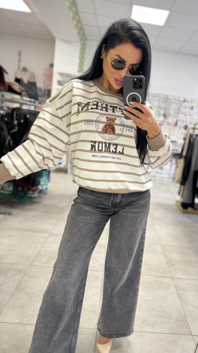 Štýlová, pohodu na dámska mikina v krásnom prevedení. Mikina je vyrobená z vysoko kvalitného bavlneného materiálu. Mikina je ľahká a hodí sa na bežné nosenie.