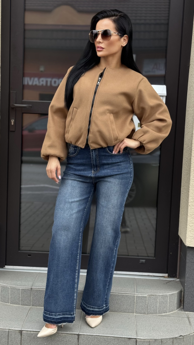 Jesenná bomber bunda – Béžová farba