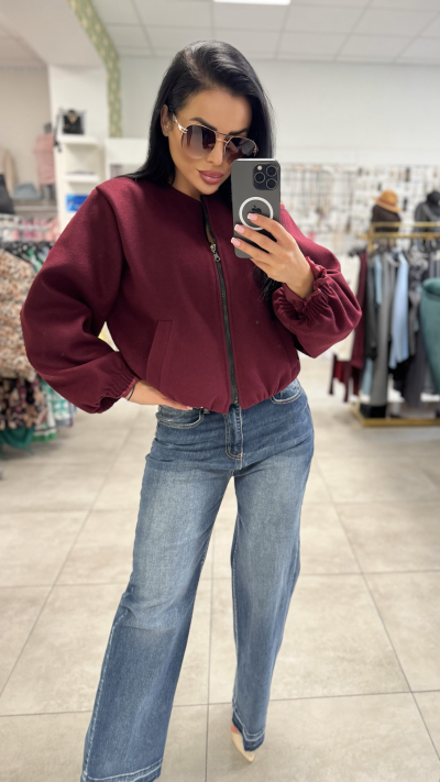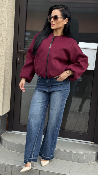 Táto štýlová jednofarebná bomber bunda v bordovej farbe je ideálnym kúskom do chladnejších dní. Je vyrobená z mäkkého, dekovinového materiálu, ktorý pôsobí hrejivo a príjemne na dotyk. Bunda má klasické zapínanie na zips a dlhé rukávy, zakončené pružnou gumičkou pre pohodlné nosenie. Elastický lem je aj v spodnej časti, čo zvýrazňuje typický bomber štýl a zároveň zaisťuje, že bunda pekne sedí na postave. Namiesto goliera má jemný okrúhly výstrih, ktorý dodáva modelu minimalistický a čistý vzhľad. Vďaka univerzálnej veľkosti sa hodí pre rôzne typy postavy a jednoducho sa kombinuje s džínsami, nohavicami aj sukňou. Vlastnosti: • farba: bordová jednofarebná) • zapínanie: na zips • rukávy: dlhé s elastickým zakončením • spodný lem na gumičku • okrúhly výstrih bez goliera • materiál: hrejivý dekovinový textil • veľkosť: univerzálna Štýlový a nadčasový kúsok, ktorý nesmie chýbať vo vašom šatníku.