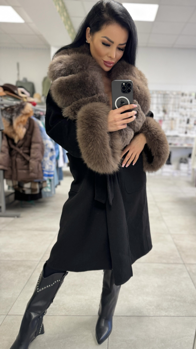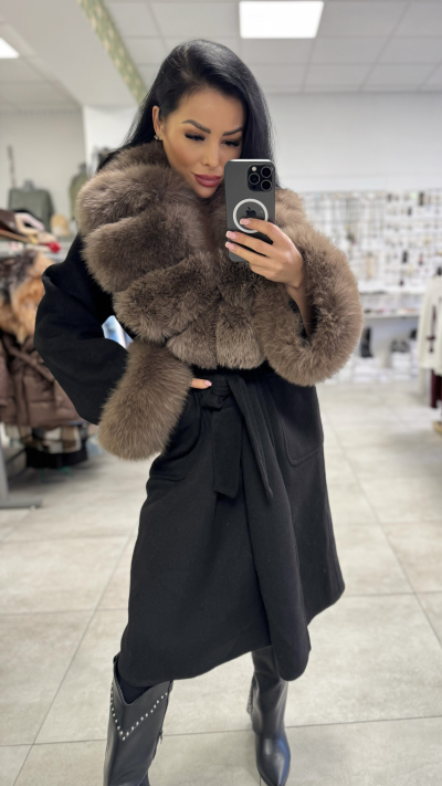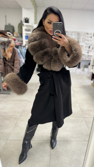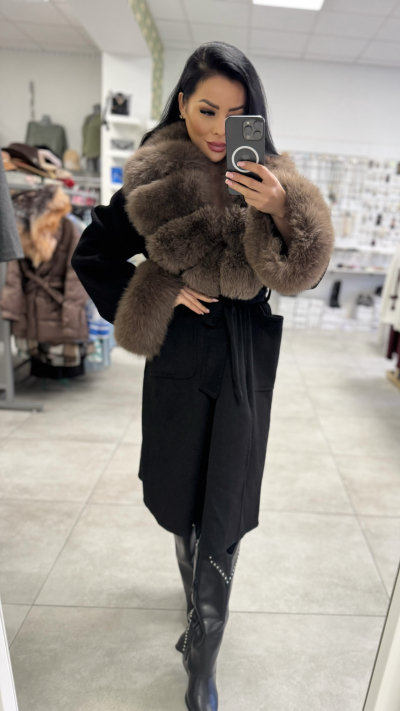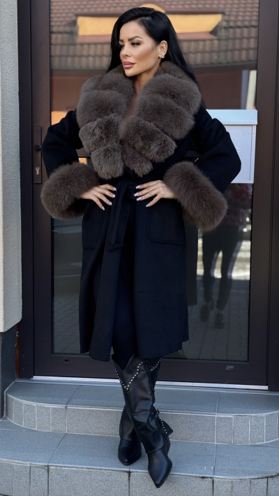 Čierny kabát s pravou kožušinou