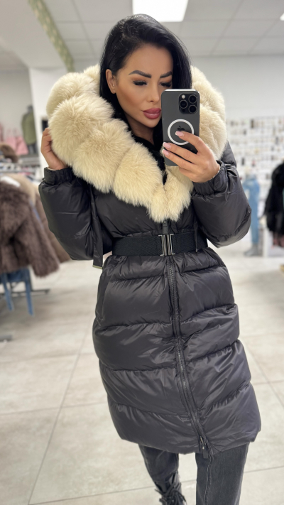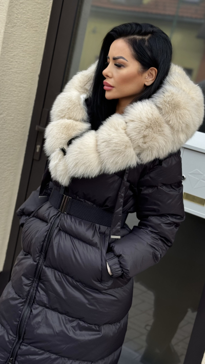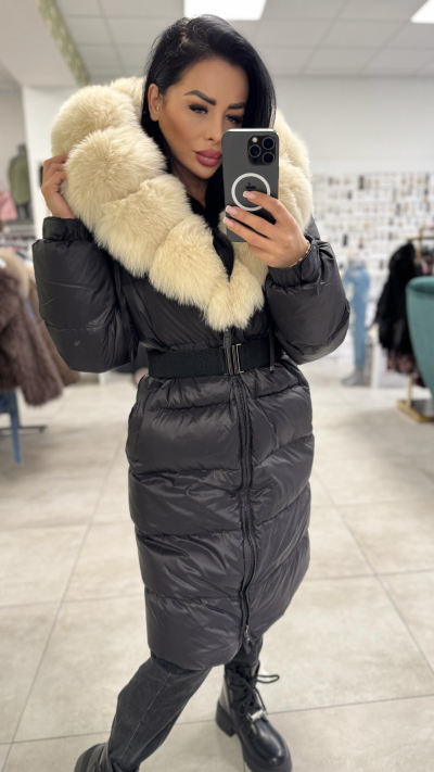 Dámska perová bunda s prírodnou kožušinou – čierna Luxusná, mimoriadne hrejivá a kvalitne prepracovaná zimná bunda, ktorá spája eleganciu s maximálnym komfortom. Vyrobená z vysokokvalitného perového výplňového materiálu, vďaka ktorému perfektne drží teplo aj v tých najchladnejších dňoch. Dominantou bundy je bohatá prírodná kožušina v naturálnom odtieni, ktorá dodáva modelu exkluzívny vzhľad. Bunda má moderný strih s prešívaním, praktickým zapínaním na zips a širokým pásom, ktorý krásne zvýrazní postavu. Vlastnosti: • vysokokvalitná perová výplň • luxusná prírodná kožušina • prešívaný predĺžený strih • zapínanie na pevný zips • nastaviteľný pás pre perfektné prispôsobenie • moderný a elegantný vzhľad Veľkosť: Univerzálna – odporúčaná pre veľkosti M až menšie L (vďaka pásu sa pekne prispôsobí).