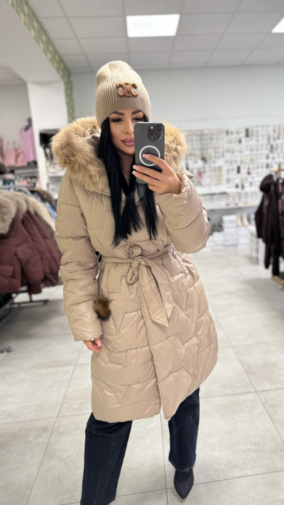 Táto dámska zimná bunda je perfektnou kombináciou luxusného vzhľadu, funkčnosti a zimného pohodlia. Béžová farba je nadčasová a jednoducho sa kombinuje s akýmkoľvek outfitom. Ideálna na bežné nosenie, do mesta aj na zimné prechádzky.