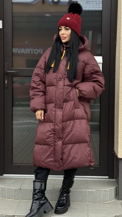 Dámska dlhá páperová bunda – univerzálna, extra hrejivá a štýlová Objav dokonalú zimnú bundu, ktorá spojí maximálne teplo, pohodlie a moderný dizajn. Táto dlhá páperová bunda v krásnej bordovej farbe je ideálna na každodenné nosenie počas chladných dní – či už ideš do mesta, na prechádzku alebo do práce. Vlastnosti: • Dlhý oversize strih – zakryje a zahreje aj v najväčších mrazoch • Ľahká, ale veľmi hrejivá výplň – komfortné nosenie bez zbytočnej hmotnosti • Praktická kapucňa – ochráni pred vetrom aj snežením • Bočné vrecká – na ruky či drobnosti • Zapínanie na zips + patenty – dvojitá ochrana pred chladom • Moderné prešívanie – dodáva bunde tvar a trendový look • Univerzálny strih – vhodná pre rôzne typy postáv Pre koho je určená? Pre každú ženu, ktorá sa chce v zime cítiť komfortne, teplo a zároveň štýlovo. Skvele sa kombinuje s čižmami, teniskami aj zimnými doplnkami.