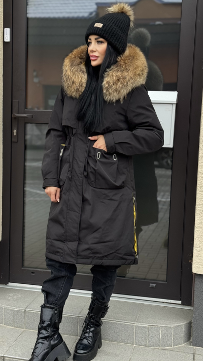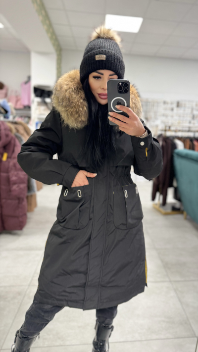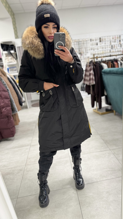 Dámska zimná parka s prírodnou kožušinou – model „Natural Fur“ Luxusná, hrejivá a elegantná! Táto prémiová zimná parka s bohatou prírodnou kožušinou na kapucni je ideálnou voľbou pre ženy, ktoré chcú spojiť štýl, komfort a kvalitu. Moderný predĺžený strih krásne formuje postavu a poskytuje maximálne teplo aj v tých najchladnejších dňoch. Vlastnosti: • vysoko kvalitná, hustá natural fur kožušina • teplá, dvojvrstvová zimná výplň • pohodlný, ženský strih • praktické predné vrecká • zapínanie na zips + patentky • možnosť stiahnutia v páse • moderný detail žltého vnútorného lemovania Dostupné veľkosti: S, M, L Odporúčané veľkosti: • S – sedí na bežnú S / užšie M • M – sedí na klasické M / menšie L • L – sedí na štandardné L Model je krásny, kvalitný a perfektne sedí na postave.