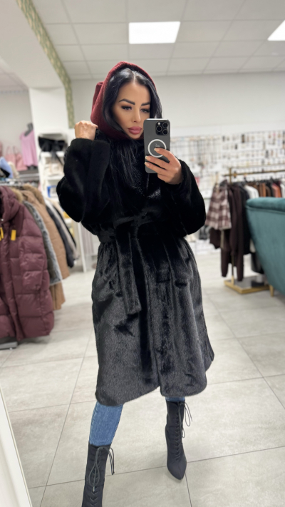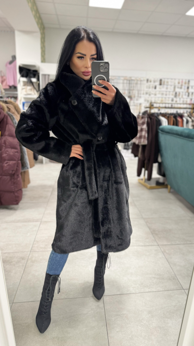 Dámsky elegantný čierny kožuch – luxusný dlhý model Dokonalý kúsok na zimné mesiace! Tento čierny, extra jemný a hebký kožuch pôsobí mimoriadne luxusne a elegantne. Je ideálny na každodenné nosenie aj na špeciálne príležitosti. Príjemný teplý materiál, krásny spád a štýlové zapínanie z neho robia must-have tejto sezóny. Vlastnosti: • extra mäkký a hladký kožuchový materiál • dvojradové zapínanie na efektné gombíky • opasok na zvýraznenie pásu • pohodlný dlhší strih • bočné vrecká • príjemná hrejivá podšívka Strih a veľkosť: Univerzálny, odporúčané pre veľkosti S – L (kožuch sa pekne prispôsobí a dá sa stiahnuť opaskom). Farba: Čierna – elegantná, nadčasová, ľahko kombinovateľná.
