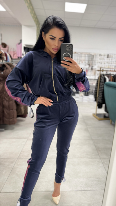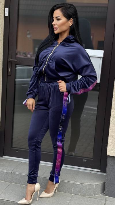 Štýlová tmavomodrá tepláková súprava v univerzálnej veľkosti je ideálnou voľbou pre každodenné nosenie aj voľné dni. Vyrobená z vysoko kvalitného, príjemného a poddajného materiálu poskytuje maximálne pohodlie pri nosení.