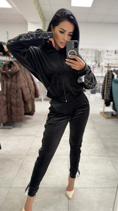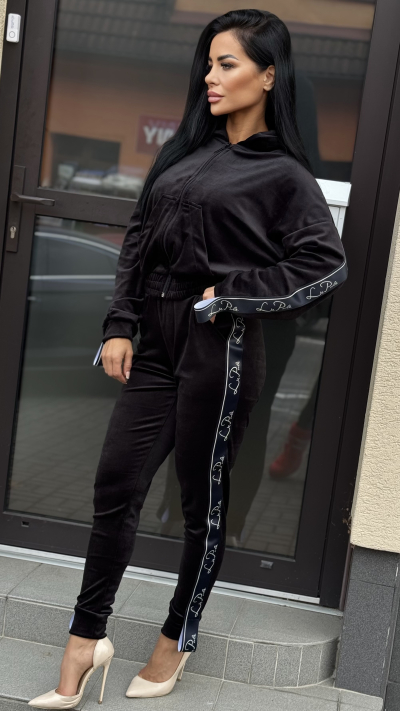 Elegantná čierna tepláková súprava v univerzálnej veľkosti je nadčasový kúsok, ktorý nesmie chýbať v žiadnom šatníku. Vyrobená z vysoko kvalitného, mäkkého a príjemného materiálu poskytuje maximálne pohodlie počas celého dňa. Mikina na zips s kapucňou pôsobí moderne a prakticky, ľahko sa kombinuje a dodáva celému outfitu športovo-štýlový nádych. Nohavice s elastickým pásom na gumu perfektne sedia a prispôsobia sa postave. Po bokoch majú jemný farebný pruh, ktorý čiernej súprave dodáva šmrnc a originálnosť. Ideálna na bežné nosenie, cestovanie, prechádzky aj voľný čas – univerzálny, pohodlný a zároveň veľmi štýlový set.