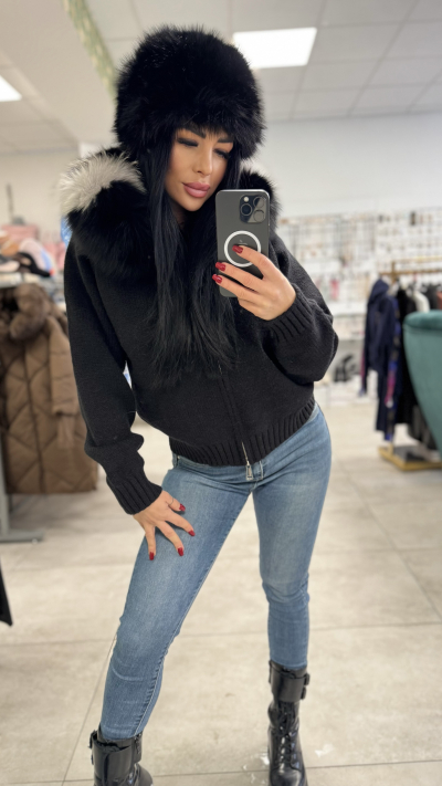 Čierny svetrík s kožušinou