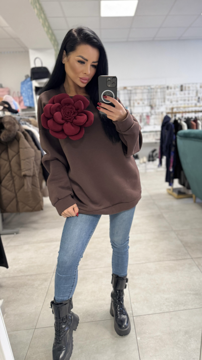 Hnedá mikina s 3-D kvetom