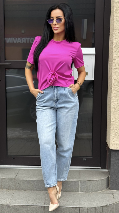 Cyklaménové tričko s ružičkou