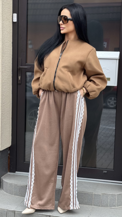 Štýlové, Dámské Tepláky v univerzálnej veľkosti. Tepláky sú voľného strihu. V Páse je guma čím si ich pekne prispôsobíte na postavu. Tepláky sú ozvláštnené po boku čipkou, čím vytvárajú netradičný a extravagantný Look.