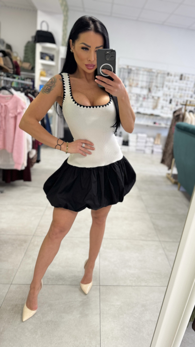 Šaty s balónovou sukňou - bieločierne