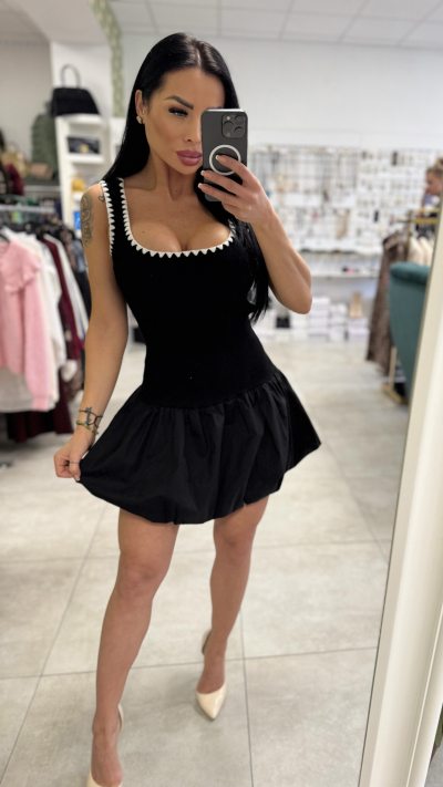 Šaty s balónov sukňou - čierna farba
