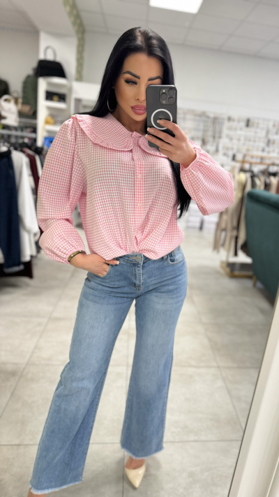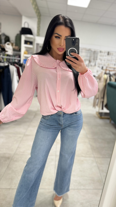 Dámska košeľa s jemným károvaným vzorom – ružová