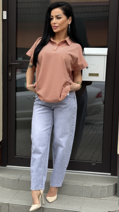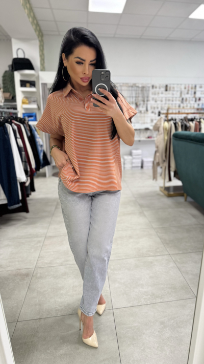 Dámské pásikavé tričko – oranžová farba