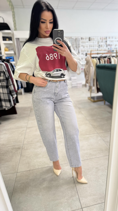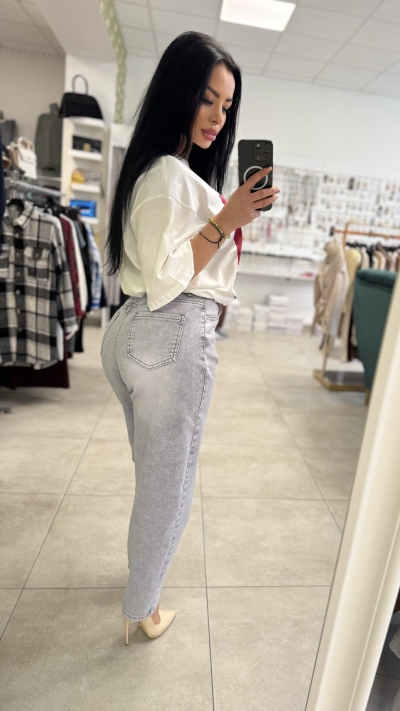 Štýlové sivé rifle s vysokým pásom, ktoré perfektne zvýraznia postavu a zároveň zabezpečia maximálne pohodlie. Moderný strih s voľnejšou nohavicou pôsobí trendy a ľahko sa kombinuje do každodenných aj elegantnejších outfitov.