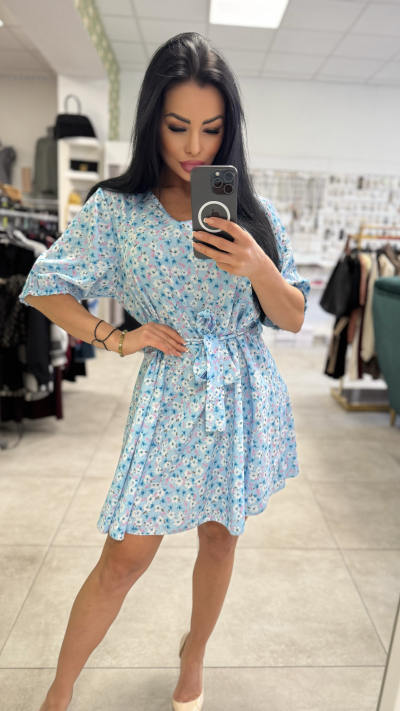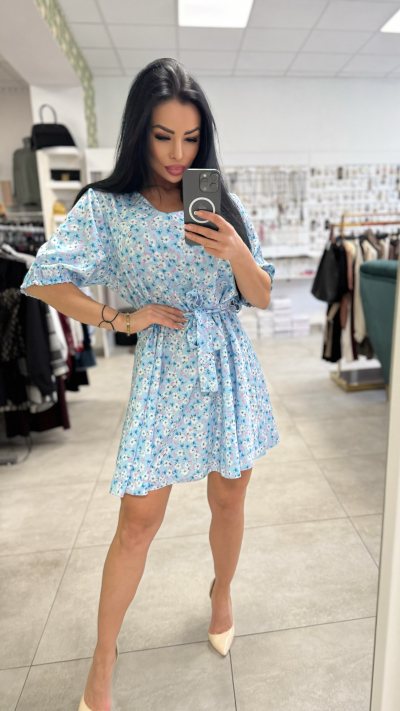 Ľahké, letné šaty v krásnom prevedení. Šaty sú vo výraznej farbe s drobným kvetovaným vzorom. Veľkosť je Univerzálna. V páse je opasok na previazanie, čím si pekne prispôsobíte šaty na postavu.